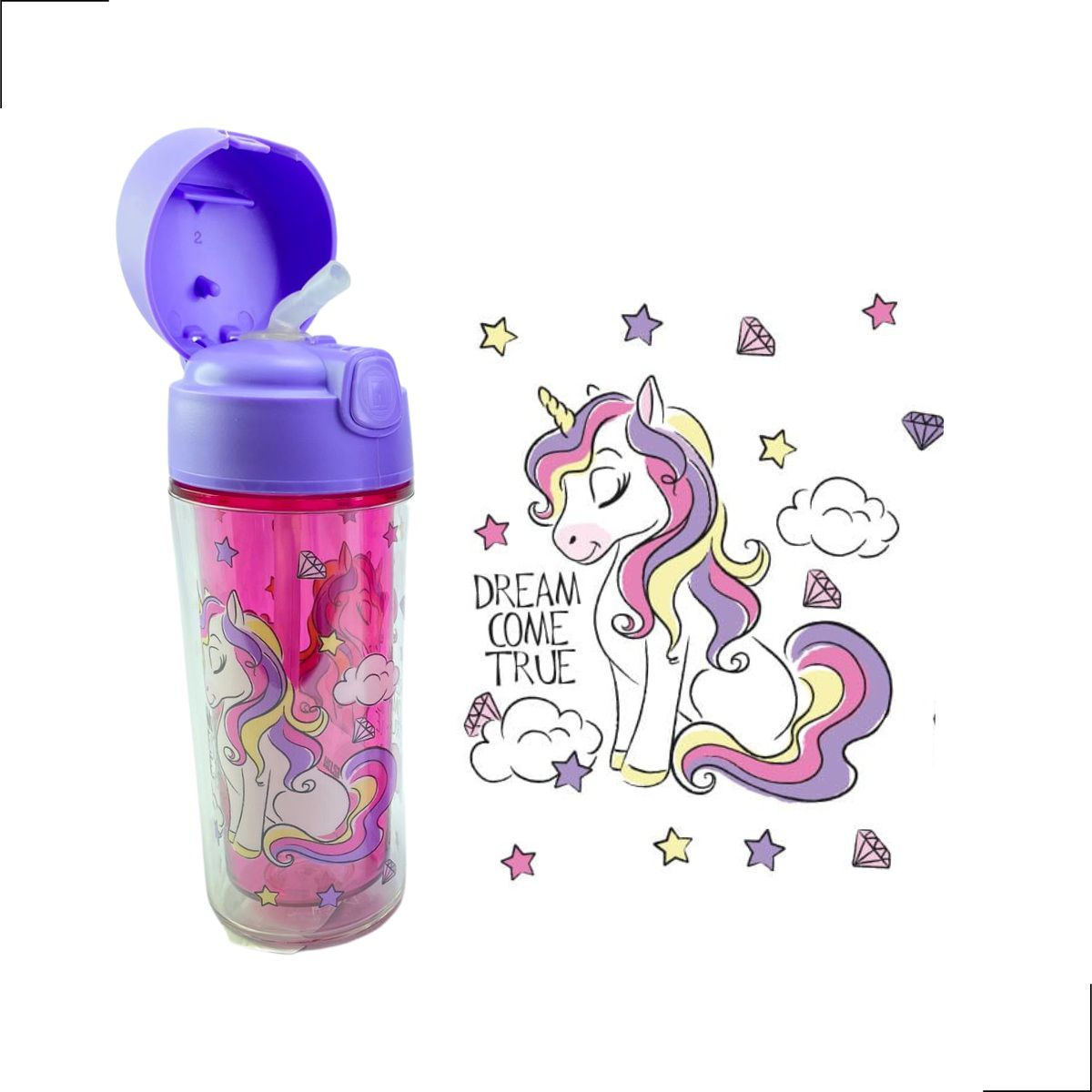 Garrafinha de Água Infantil 250ml Unicórnio com Canudo de Silicone